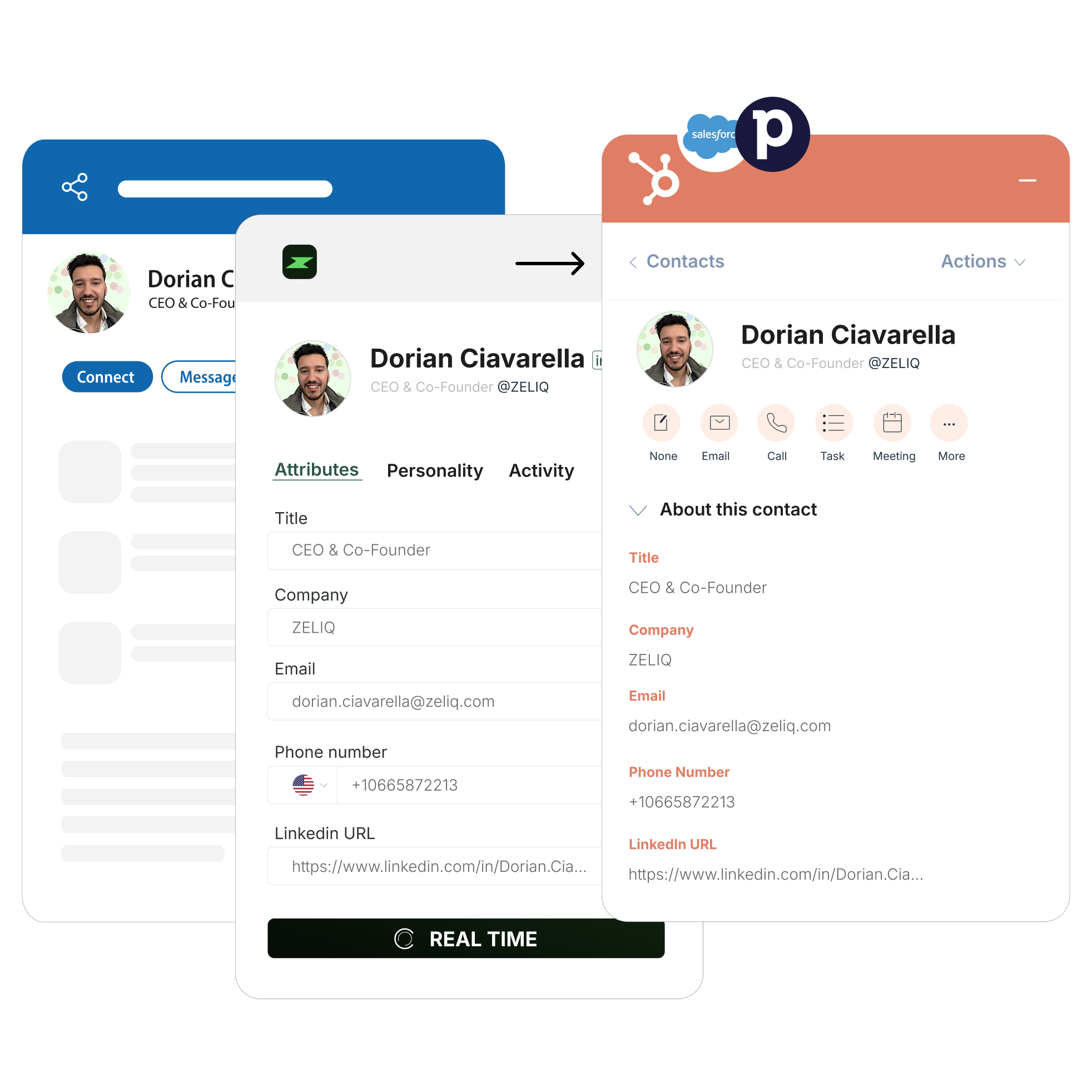 Yes, Zeliq connects with your essential sales tools. Sync with major CRM like HubSpot. Connect your email provider, and VoIP for a unified workflow. Our API also enables you to enrich on every platform.