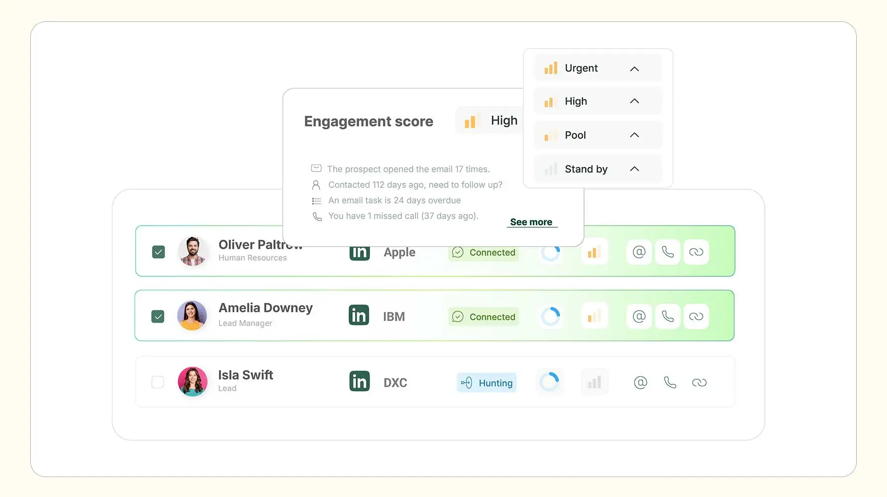 - (email + LinkedIn + call tasks)