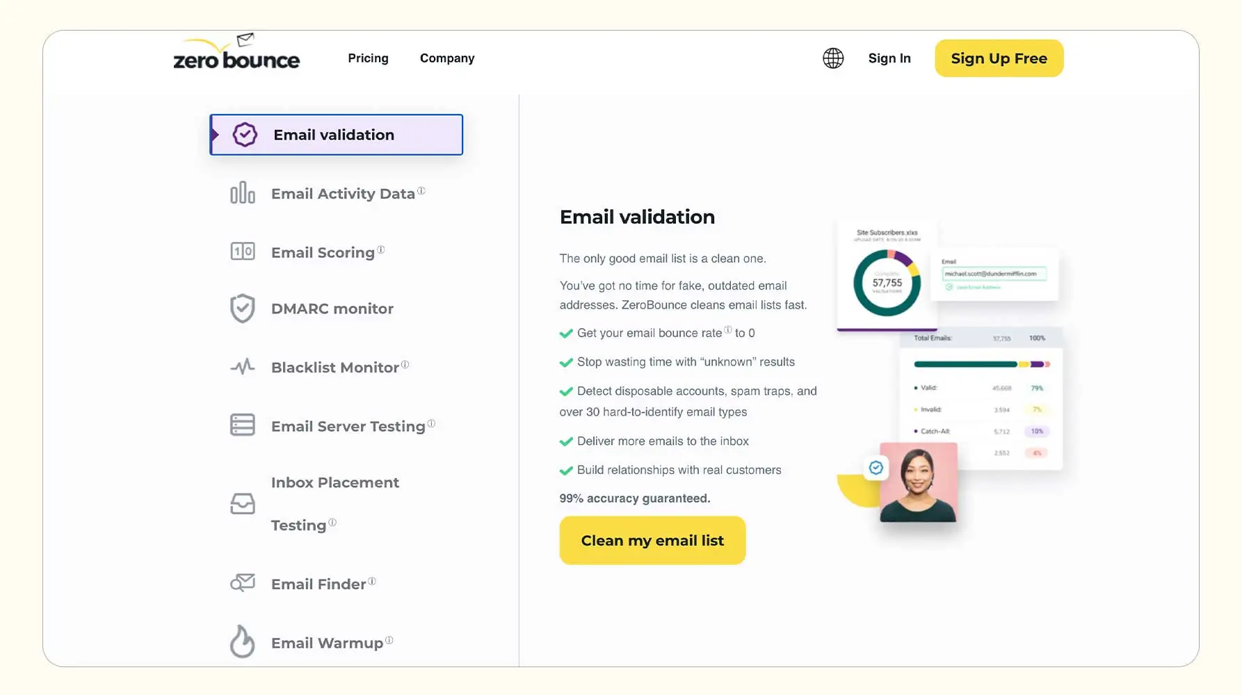 • ZeroBounce: advanced email validity scoring, helps you reduce bounce rates.