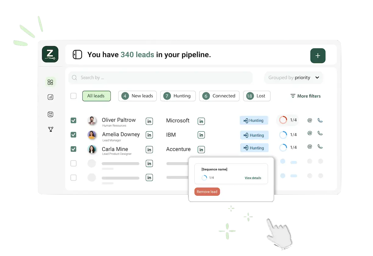 From crafting personalized emails to scheduling follow-ups and tracking key metrics, you'll have an effective sequence running in no time, allowing you to focus on closing deals.