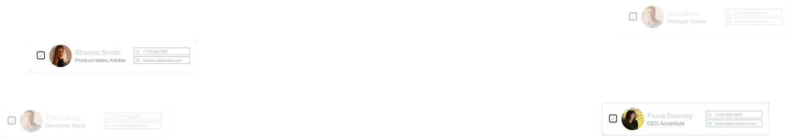 • Data that is always up to date. Emails are verified, and the database is regularly updated to ensure the reliability of the information.