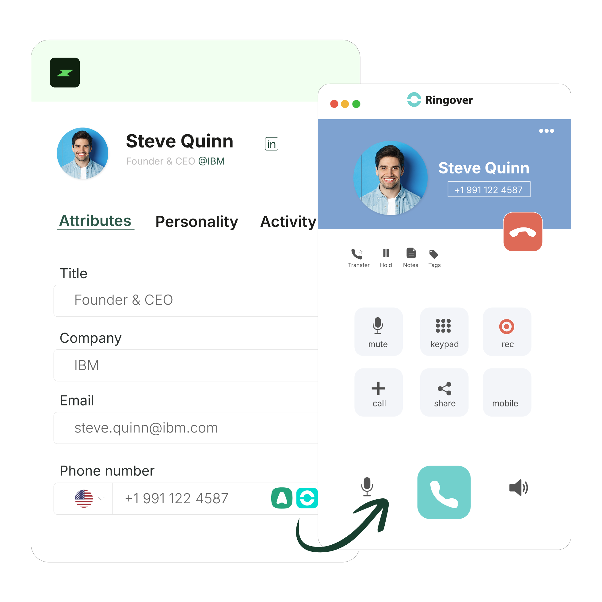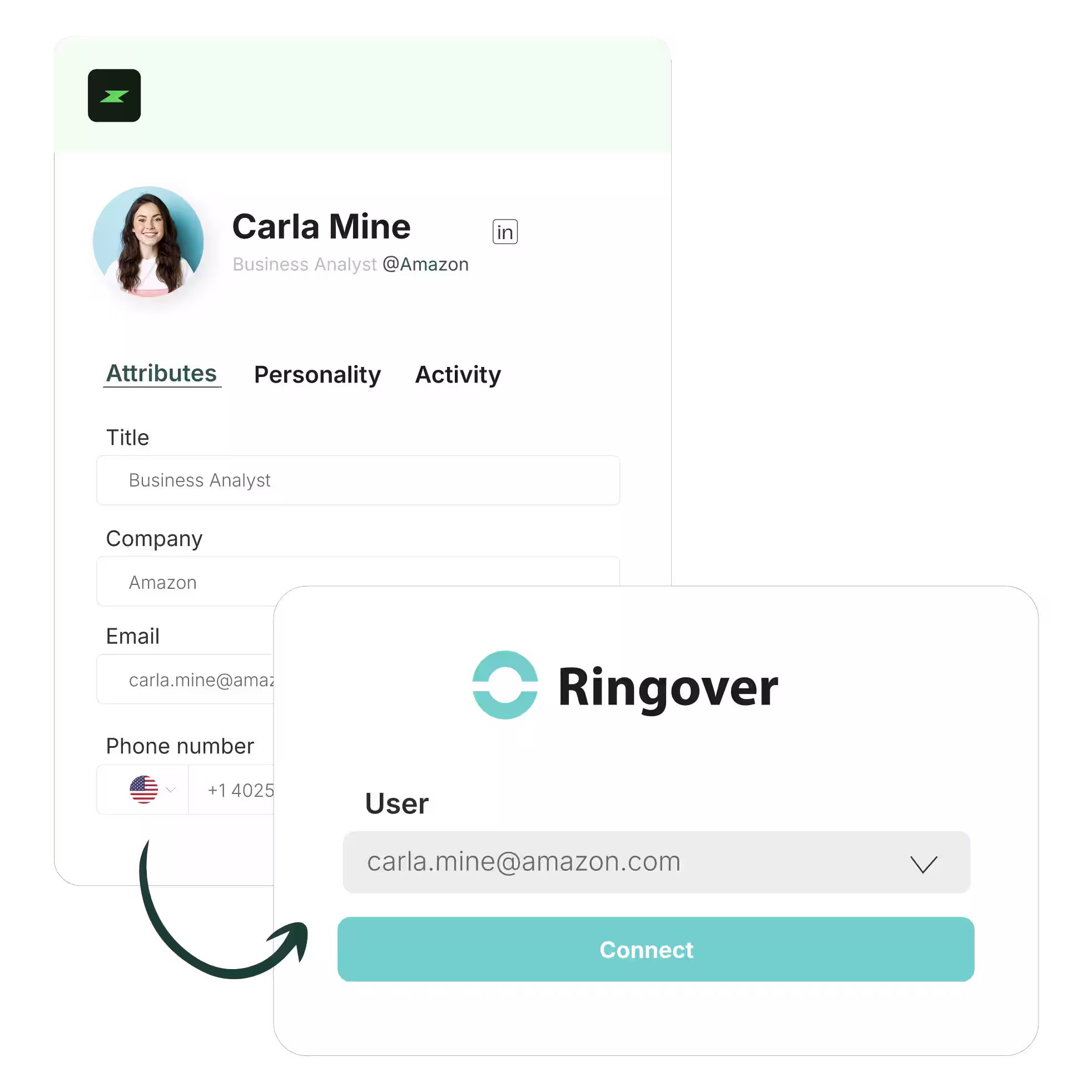 Ringover logs every conversation to Zeliq in real time - call duration, outcome, recording links. Your team gets complete visibility into who called who, when, and what happened, without manual logging.