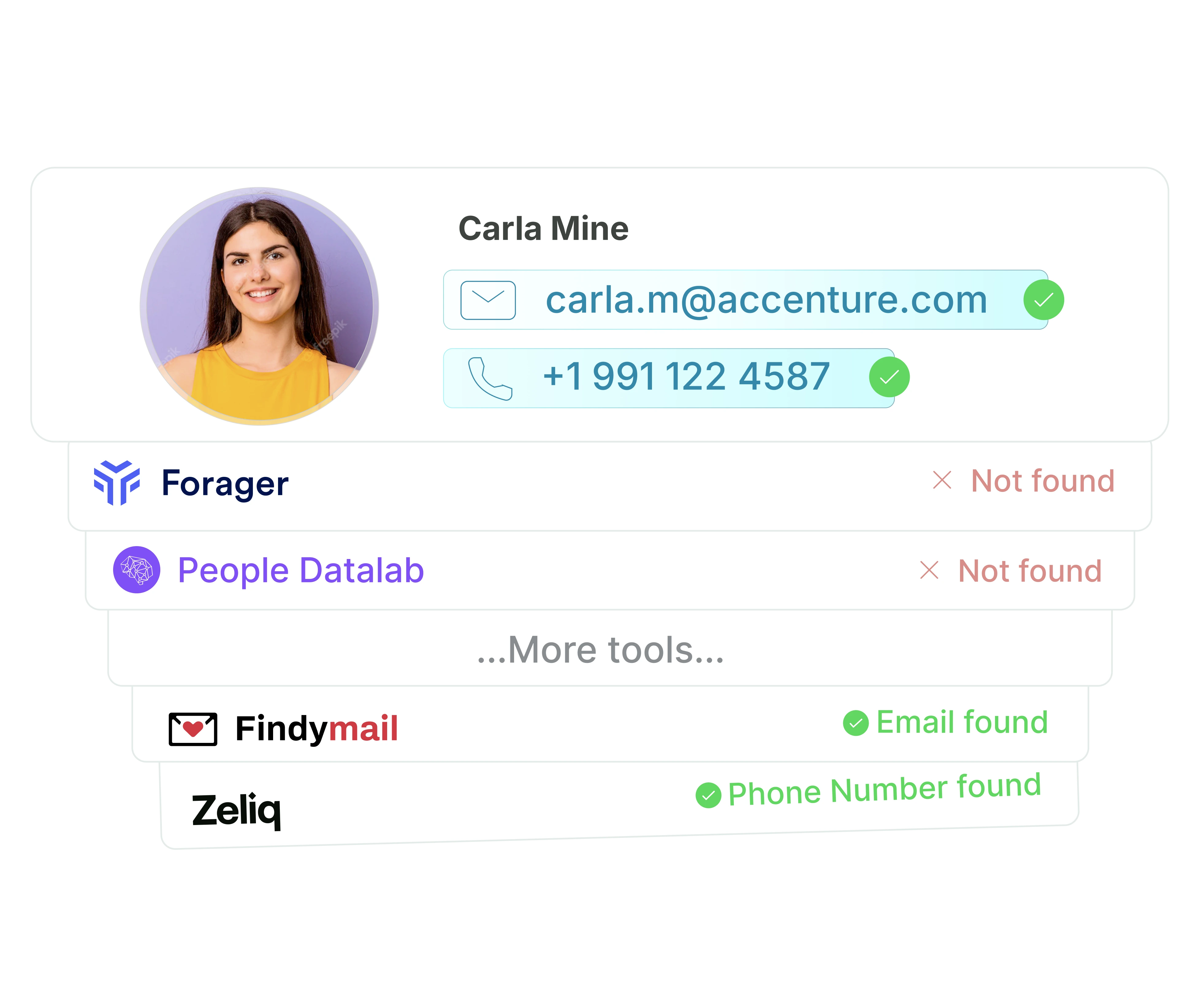Get the most accurate contact data with our waterfall enrichment accross 40+ providers.