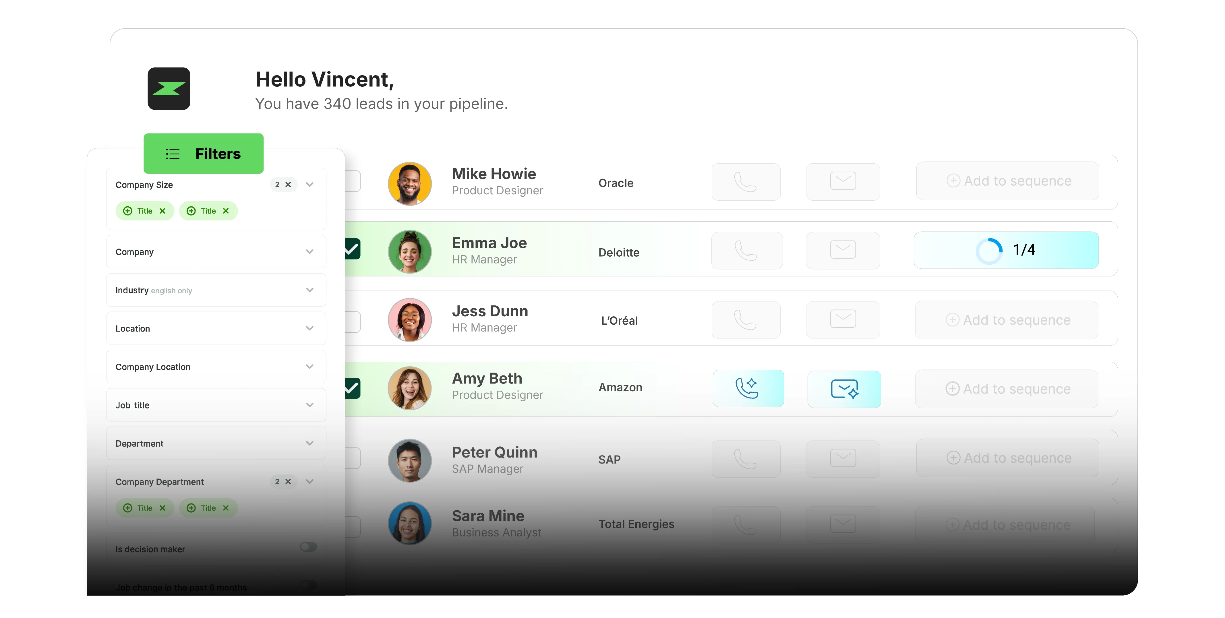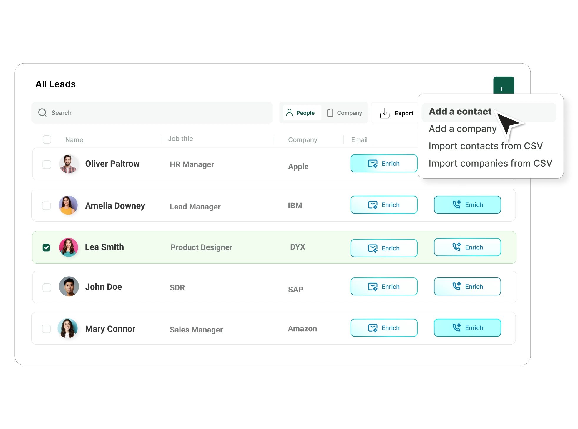 Enrichissez les prospects avec des e-mails et des numéros de téléphone mobiles vérifiés.