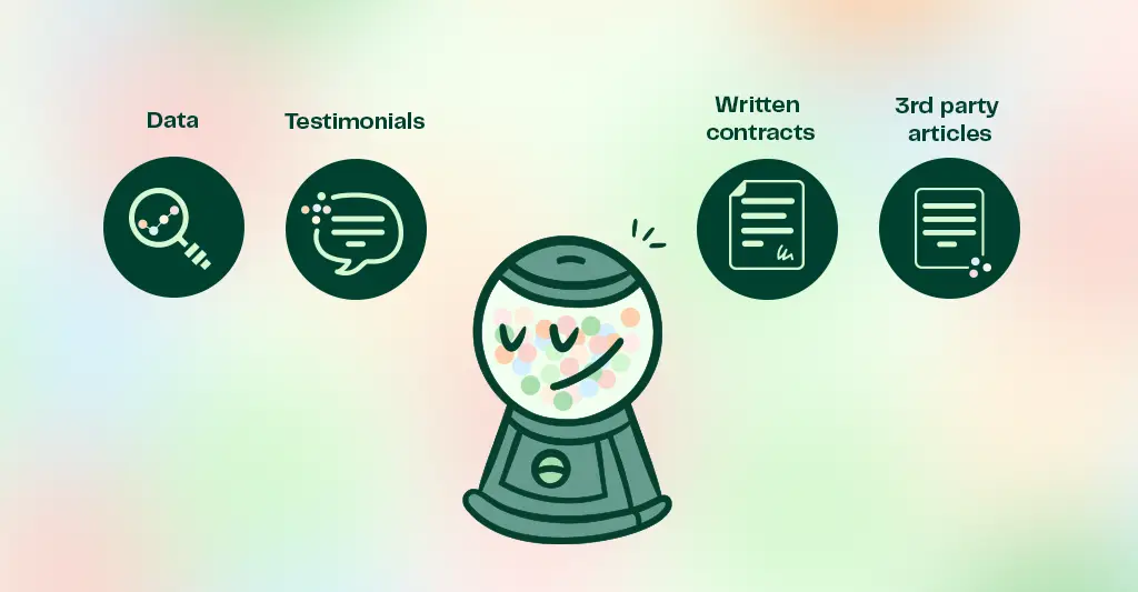 Buyers are naturally skeptical. They won’t just take your word for it—they need to see it. Visuals and third-party resources build credibility and help prospects believe in your product or service. Data, customer reviews, and even written commitments help overcome that skepticism and make your sales pitch more trustworthy.