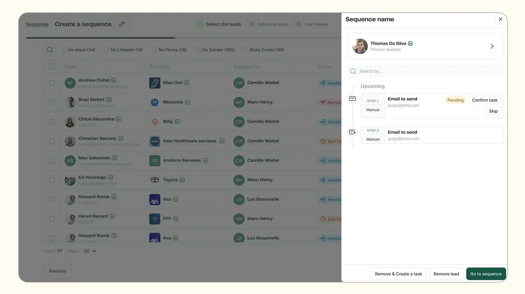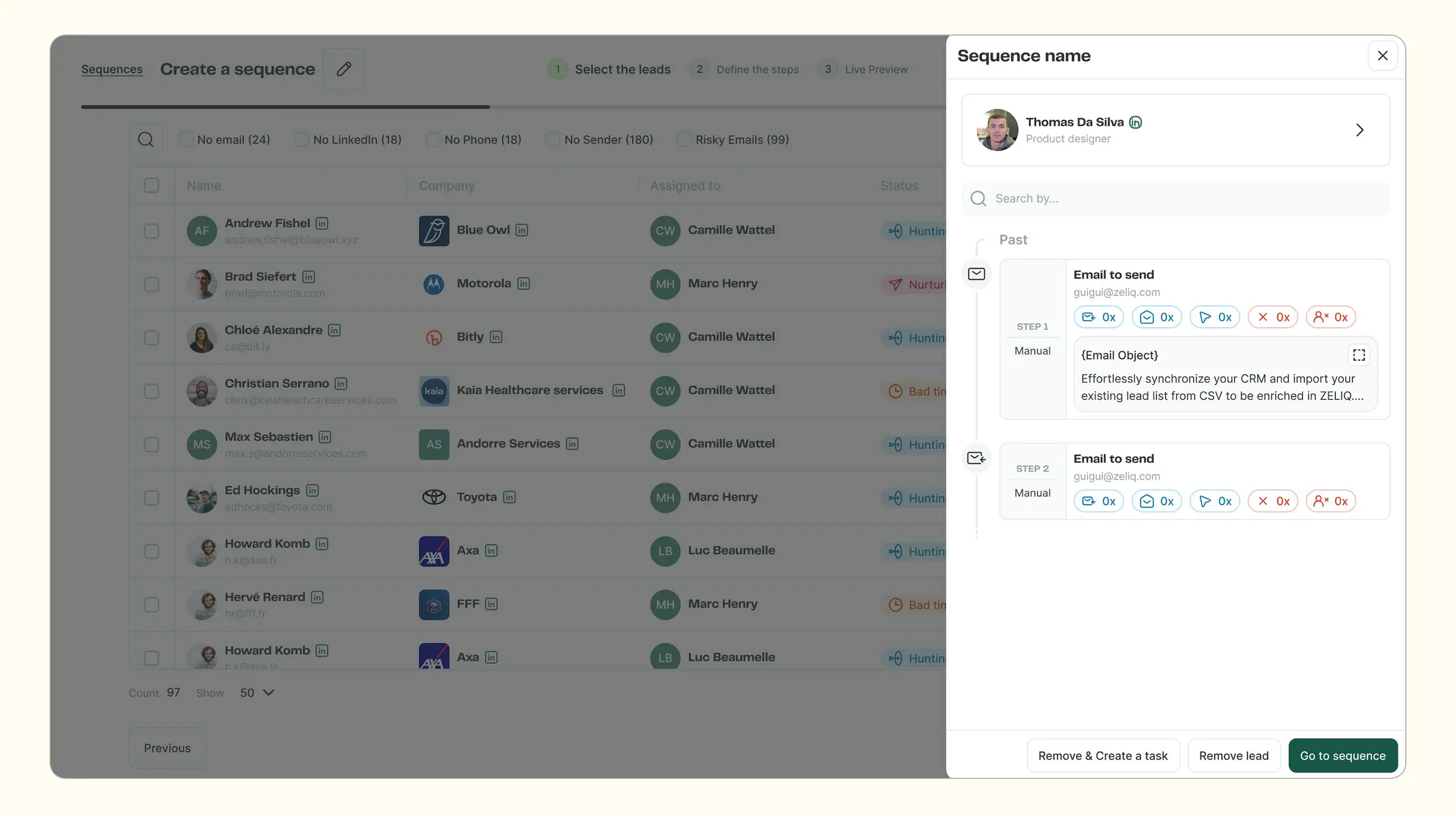 - ZELIQ auto‑flags inactive deals, schedules the next touch, and injects the best asset for that prospect stage.