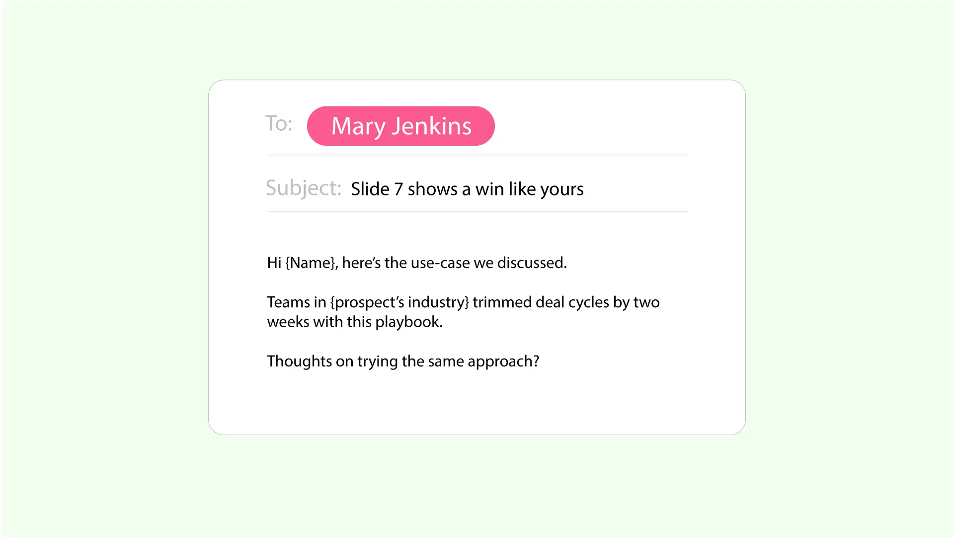 Teams in {prospect’s industry} trimmed deal cycles by two weeks with this playbook.