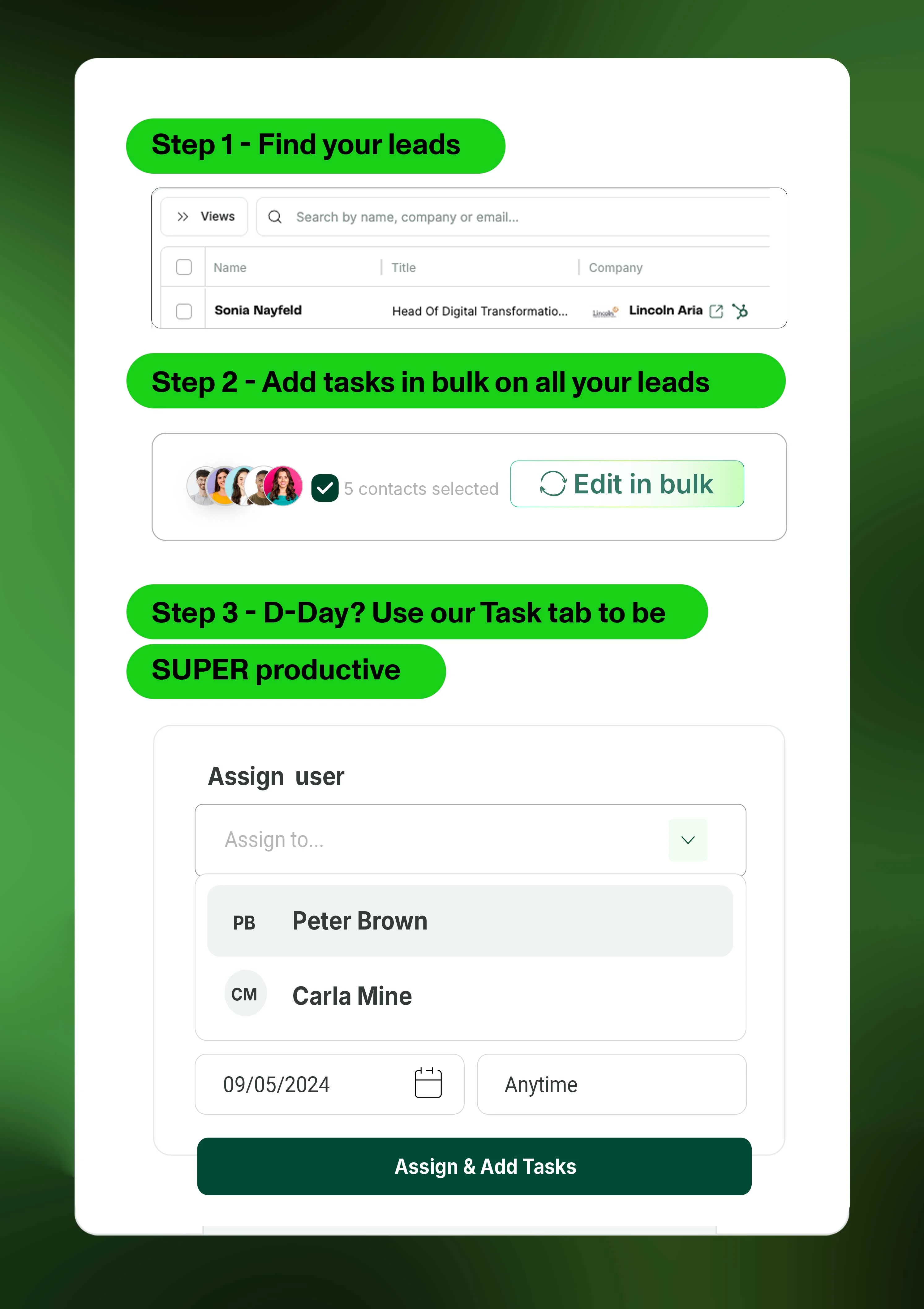 Step 2 - Add tasks in bulk on all your leads